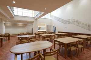 食堂兼機能訓練室、運動スタジオを中心に、明るく開放的な間取りにしています