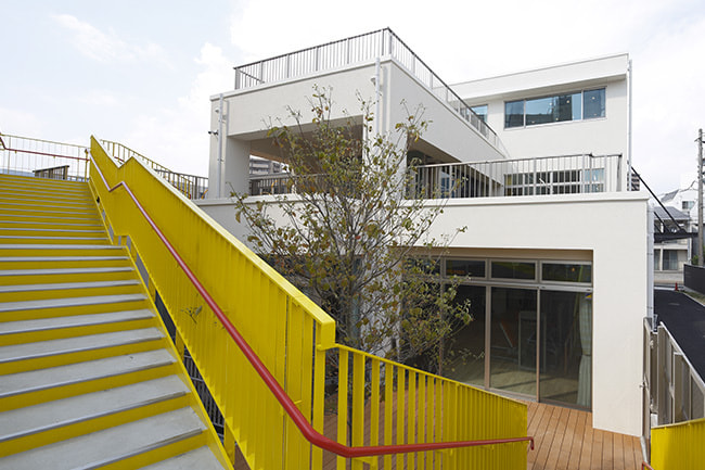 ゆるやかな階段で、歩行途中に休憩できるベンチもあります