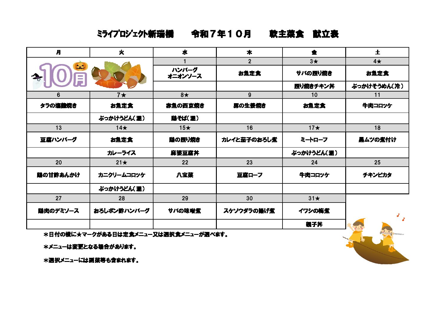 • 2025年10月献立のご案内