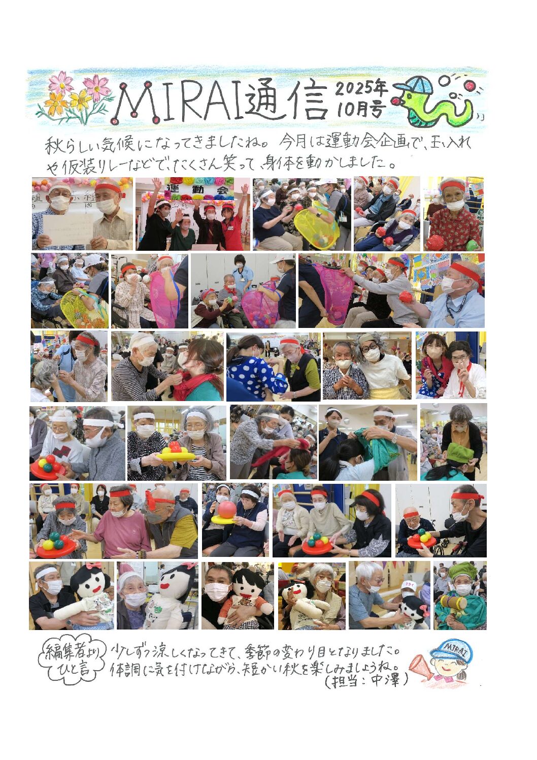 ミライ通信10月号のご案内 10月 24, 2025 | ミライプロジェクトからのお知らせ 10月のMIRAI通信を発刊いたしました。 下のボタンをクリックするとPDFがご覧いただけます。 MIRAI通信PDFはこちら
