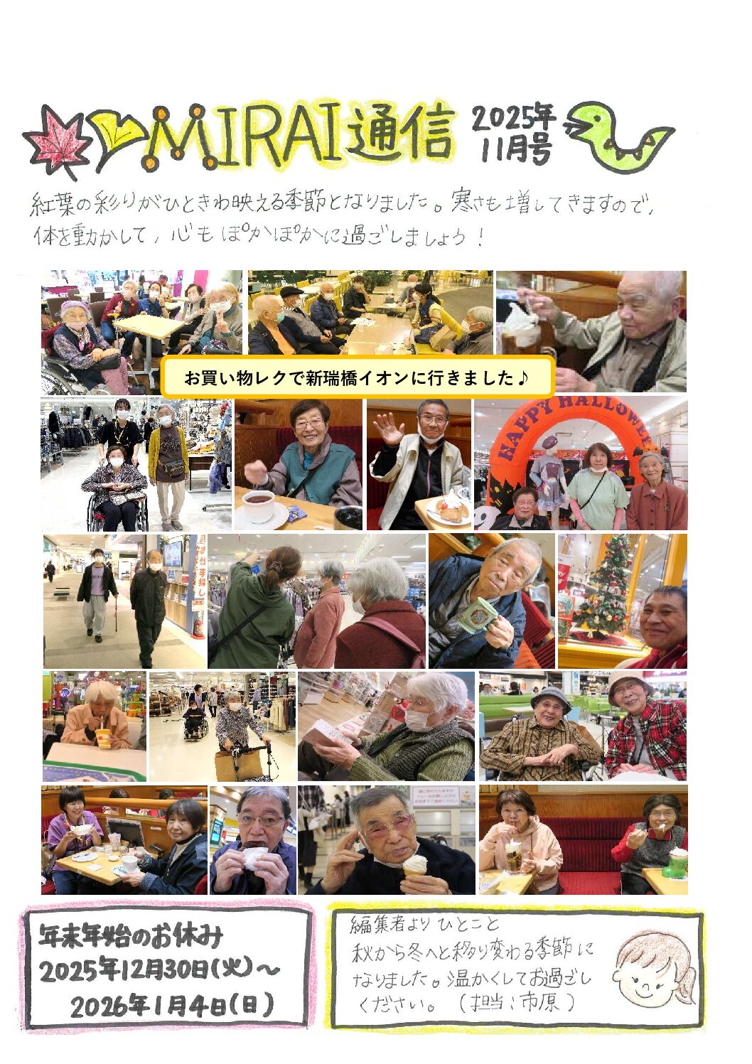 ミライ通信11月号のご案内 11月 22, 2025 | ミライプロジェクトからのお知らせ 11月のMIRAI通信を発刊いたしました。 下のボタンをクリックするとPDFがご覧いただけます。 MIRAI通信PDFはこちら