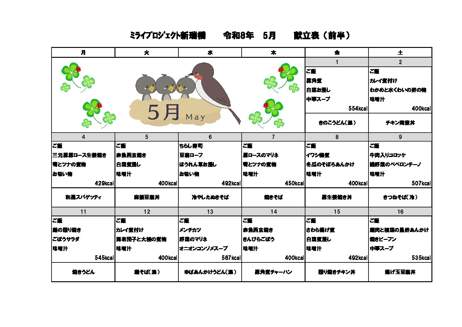 2026年5月献立のご案内
